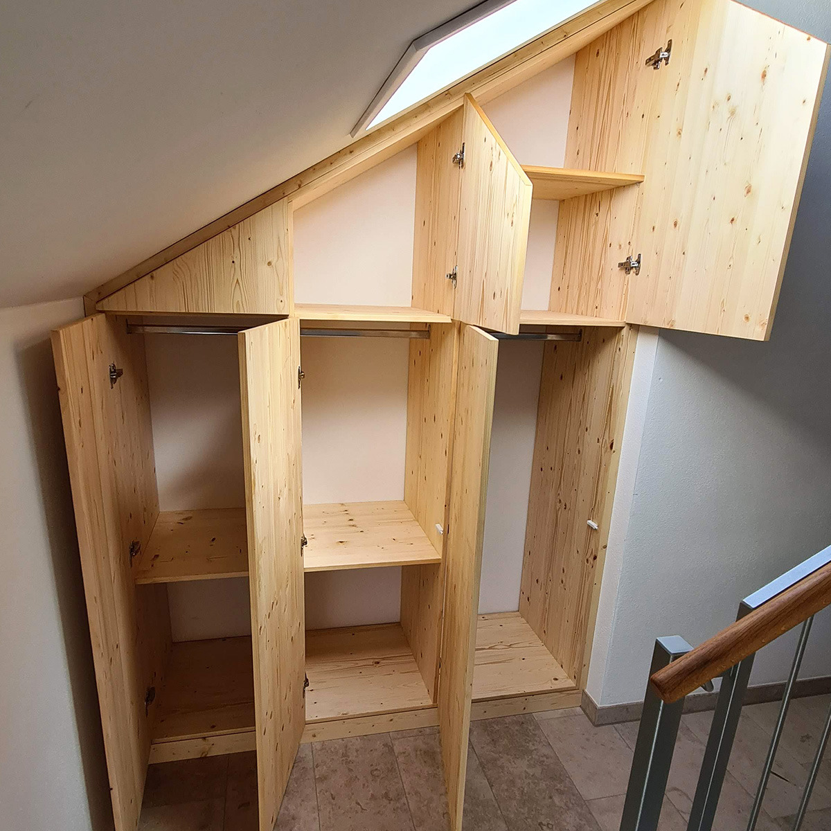 Standardschränke stoßen schnell an ihre Grenzen: Ungenutzter Platz unter der Dachschräge, verwinkelte Nischen im Flur oder der Traum vom begehbaren Kleiderschrank - hier beginnt die Stärke unserer Schreinerarbeit. Wir fertigen Ihren Einbauschrank millimetergenau nach Ihren Vorstellungen und den Gegebenheiten Ihres Raumes.Ob klassischer Kleiderschrank mit durchdachter Inneneinteilung, Garderobenschrank mit integrierter Sitzbank, Hauswirtschaftsschrank mit cleveren Auszügen oder ein raumhoher Einbauschrank, der sich nahtlos in Ihre Architektur einfügt - wir schreinern Ihnen passgenau Ihre Projekte.