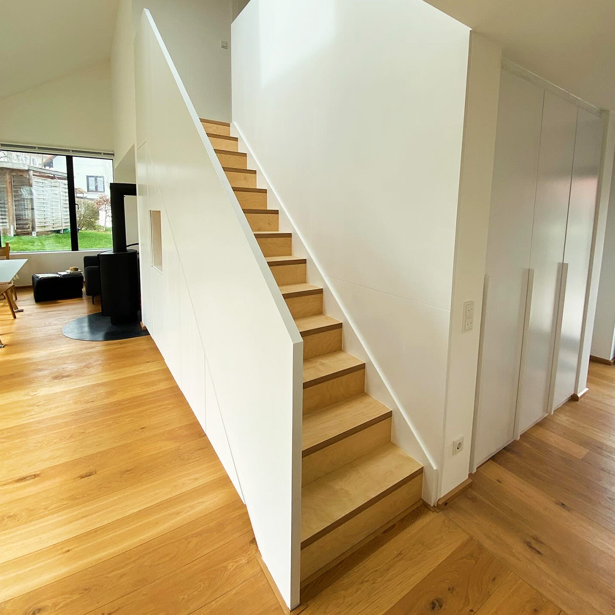 Eine Treppe ist das Rückgrat Ihres Hauses. Sie wird täglich mehrfach begangen und prägt das gesamte Raumgefühl. Ob Neubau oder Sanierung - wir passen Ihre Treppe millimetergenau in Ihre Räumlichkeiten ein.In unserer Schreinerei fertigen wir Treppen, die technische Präzision mit gestalterischer Freiheit verbinden: von der klassischen Wangentreppe über die elegante Faltwerktreppe bis zur modernen Kragarmtreppe mit schwebenden Stufen. Dabei stimmen wir Material, Form und Oberfläche exakt auf Ihr Interieur ab.